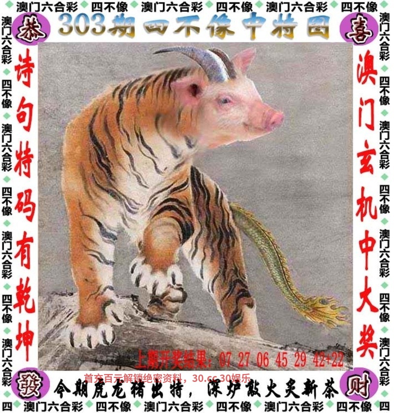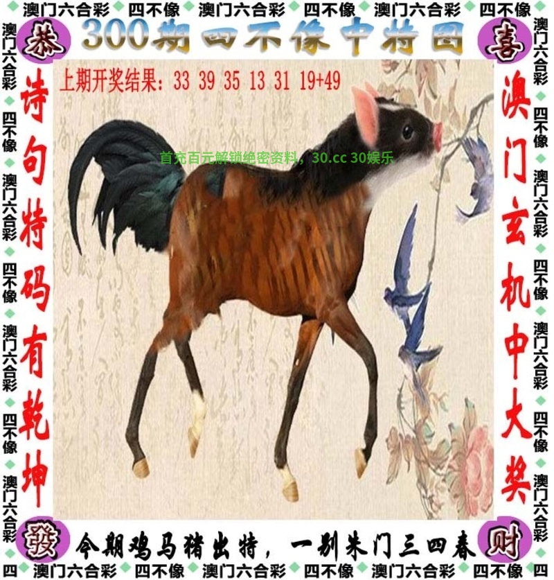 301期:复式连肖【猪马鸡猴鼠虎】2